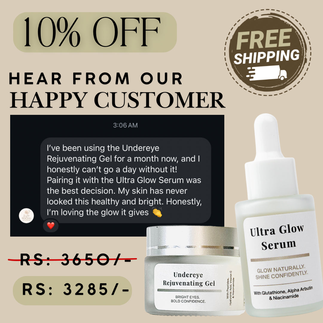 Reveal your skin's natural radiance with Ultra Glow Serum - a lightweight yet powerful formula that targets dark spots, uneven tone, and dullness while deeply nourishing the skin. Designed to absorb quickly, it leaves your complexion visibly brighter, smoother, and more balanced with every use. Enriched with antioxidants and skin-repairing properties, it helps strengthen the skin barrier, fight free radicals, and deliver lasting hydration.